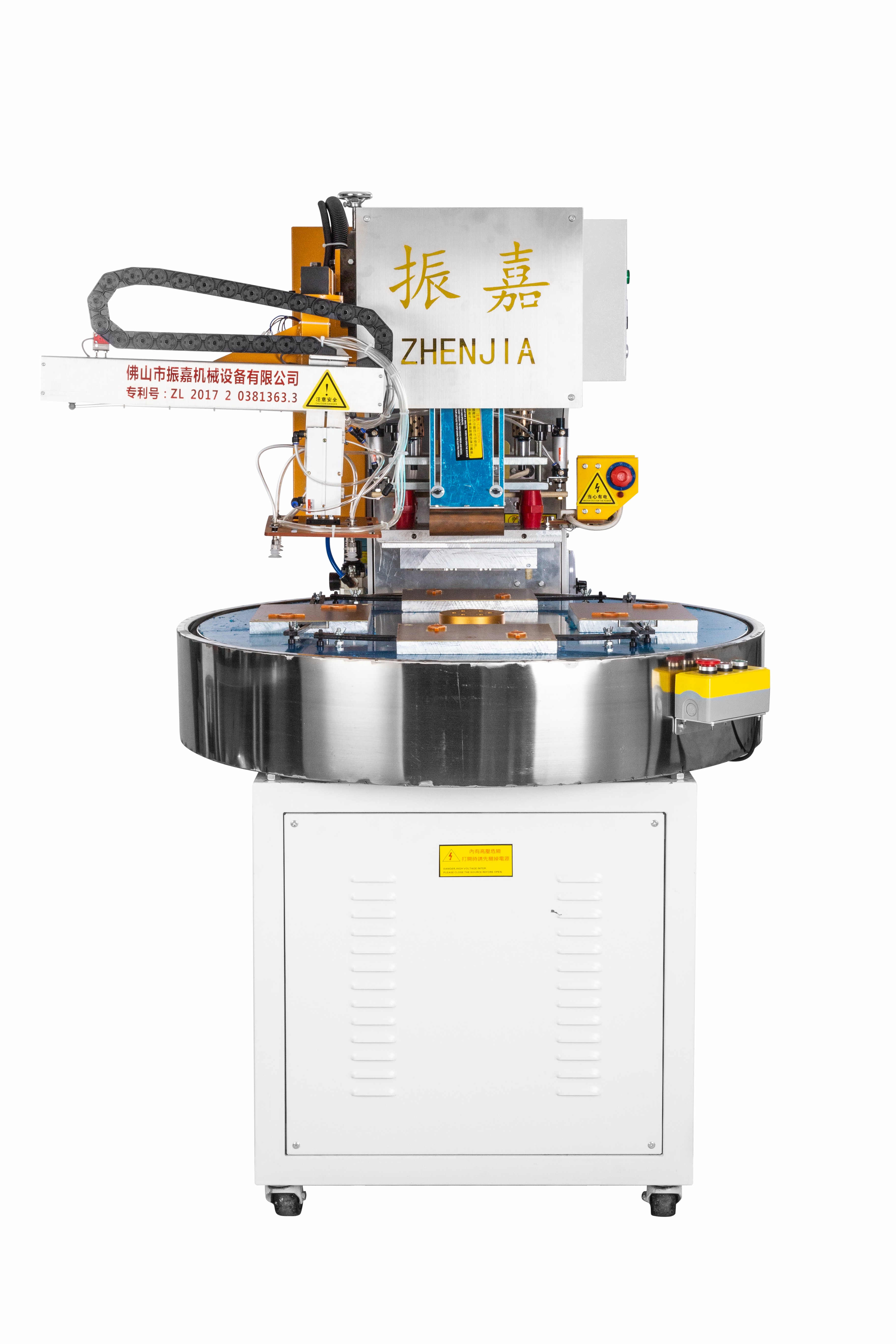 全自動圓盤高周波機設備型號為ZJ-8K-ADRB3,此機由振嘉高周波機械廠家專業(yè)生產,此機器質量已通過ISO機器質量認證;我司對客戶的樣板提供免費打板打樣,傳授產品生產整過程工序及提供生產方案。全自動圓盤高周波機設備 以圓盤360度旋轉,分為三個工作位,即每120度為一個工作位。圓盤裝有數(shù)字化變頻器,通過帶動電機控制圓盤轉動速度,數(shù)字化顯示可調節(jié), 并配有PLC觸摸屏控制,簡單易懂,高效節(jié)能。
