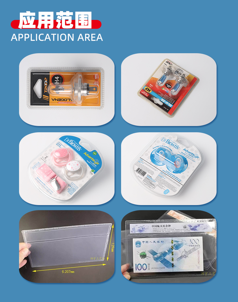 主要適用于APET、PETG、GAG環(huán)保材質(zhì)的雙面吸塑泡殼的封口包裝、吸塑紙卡包裝、牙刷封口包裝,以及EVA布類皮革、真皮、OPP、PU、表帶、吊帶、熱水袋、保暖袋等需要熔接又要同步熔斷的產(chǎn)品,一面吸塑罩泡殼和一面紙卡的封邊封口切邊貼合,一次成型沒毛邊,邊緣光滑。