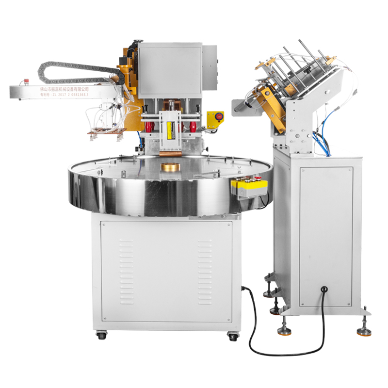 設備型號:ZJ-8K-ADRB3 四工位雙機械手自動轉盤高周波機